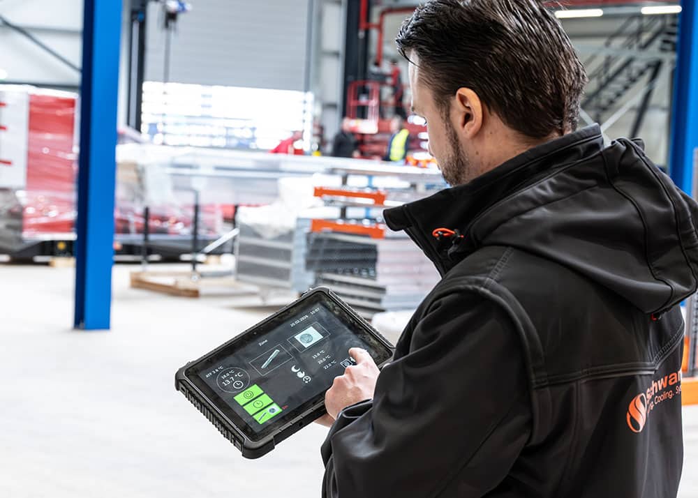BU: Zeitgemäß lässt sich die hybrid Regelung via Tablet, Handy oder PC bedienen und kann zur Fernwartung optional im Schwank Service aufgeschalten werden.